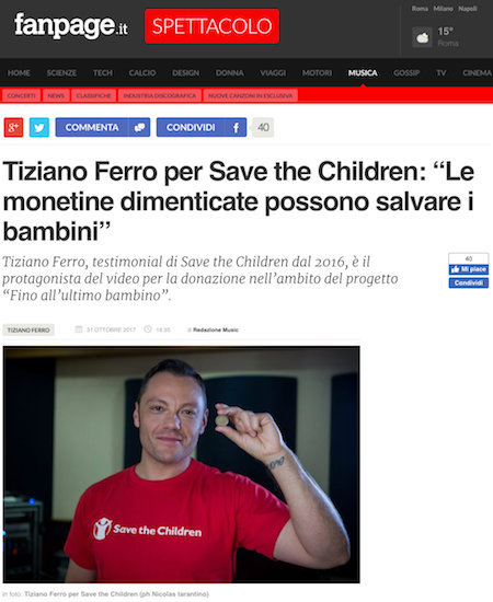 Tiziano Ferro, Ambassador for Save The Children Italia